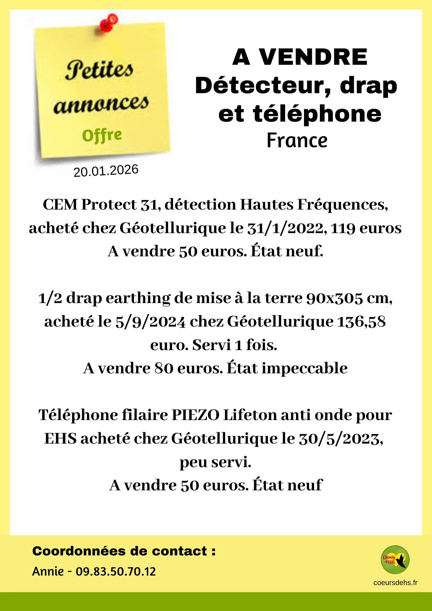 Dépliant Cœurs d’EHS « Électrosensibilité, tous concernés » 2 éditions à télécharger gratuitement : l’édition classique et l’édition spéciale 16 juin personnalisable. Continuer la lecture de « Dépliant Cœurs d’EHS « Électrosensibilité, tous concernés » »